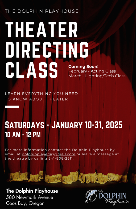 The class will meet on Saturdays at the Dolphin Playhouse from 10 am to 12 pm. A generous grant has been secured which reduces the cost of tuition from $75 to $25, with a rebate of tuition to anyone who directs a production for the Dolphin Playhouse. Fees may be paid on the first day of class or by arrangement.