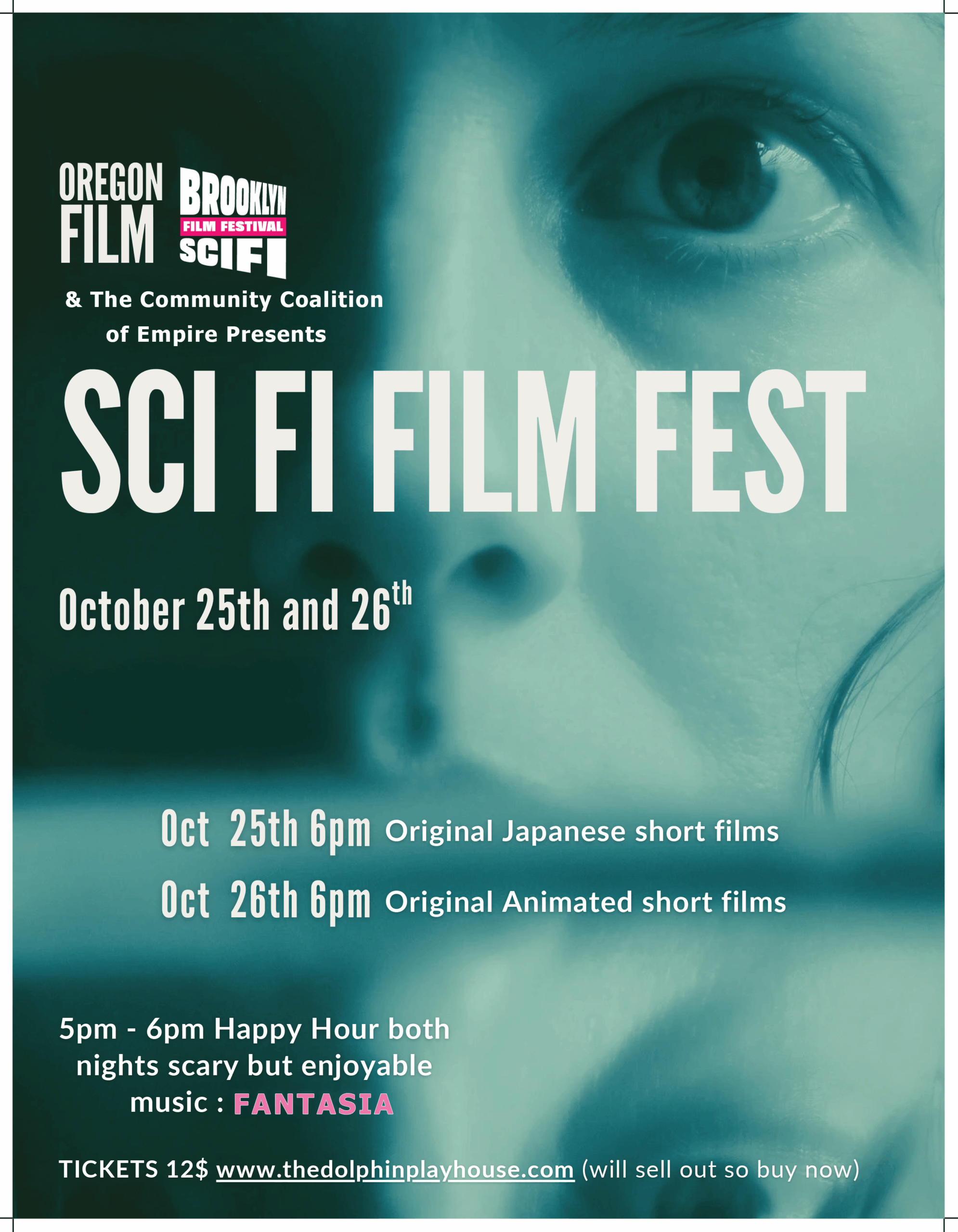 Join us on the 25th and/or the 26th for the South Coast Sci Fi Film Festival, in association with Oregon Film, Brooklyn Scifi Film Festival and The Community Coalition of Empire. Happy hour begins at 5pm each night, where beer and wine will be sold along with our normal delicious popcorn and variety of candies and soda.